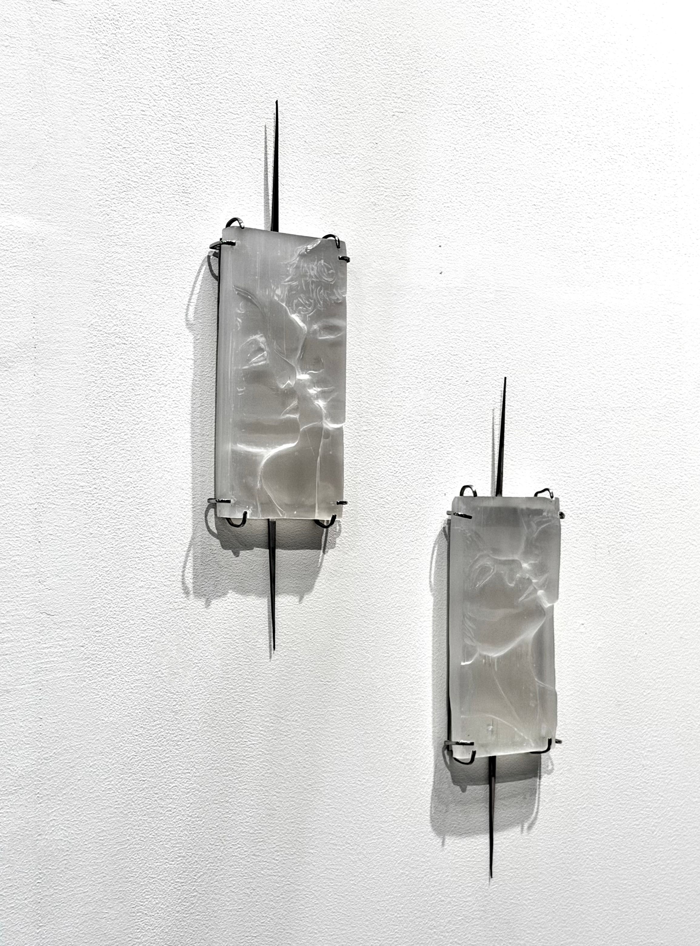 Across drawing, relief sculpture, and painting, the works on view foreground intimacy as a relational act. Attention is placed on deliberate gestures: bodies moving in rhythm, hands meeting through ritual, selves glimpsed in reflection or partially absorbed into their surroundings. These moments position love as ritual and action. Deliberate. Soft. Intimate. Balanced. Holding. Seeing.