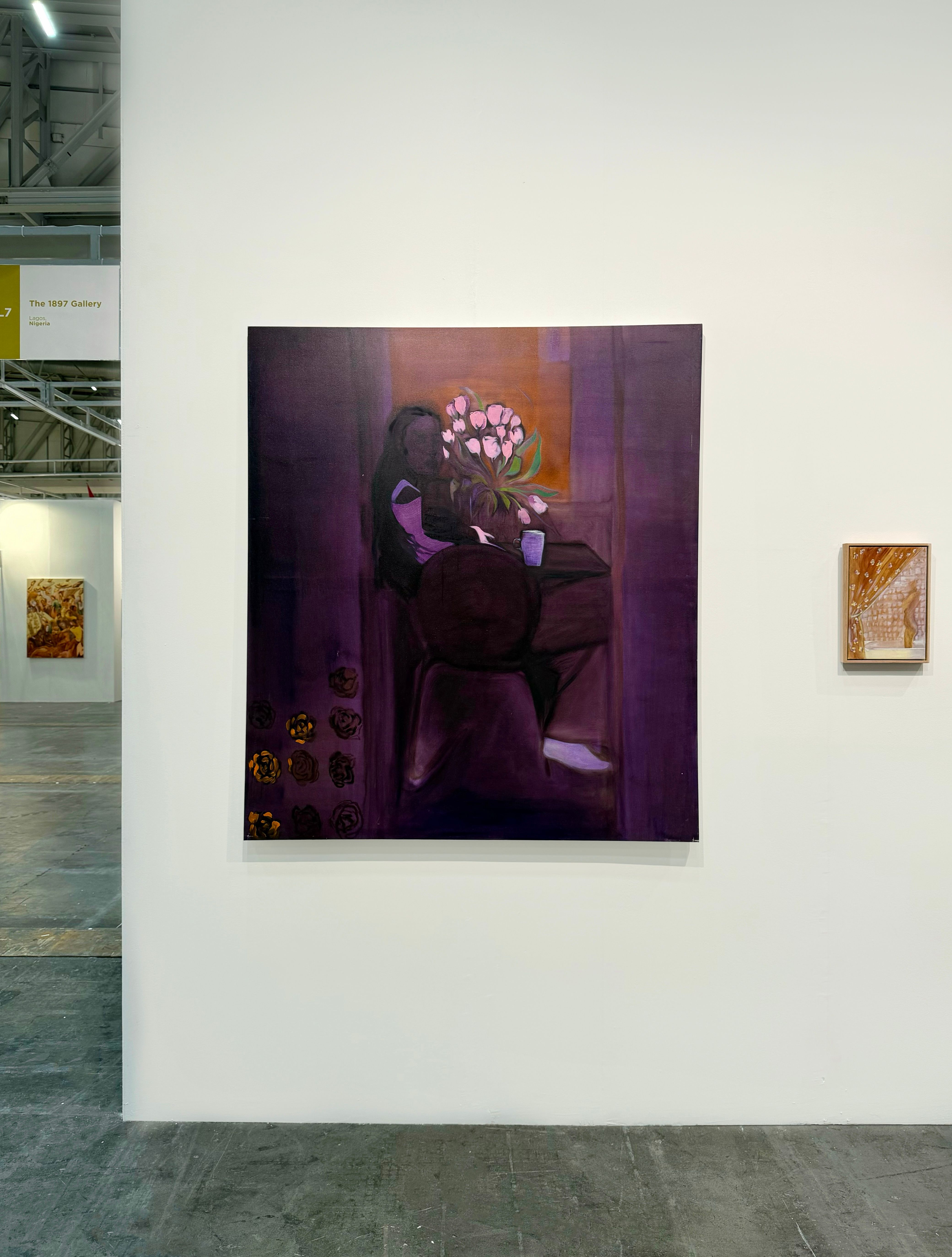 Her chromatic worlds-violet, brown, and aqueous tones-render the intimate monumental. Everyday gestures and objects become symbols of heritage and lineage, transforming personal memory into universal meditation on presence, absence, and lived time.